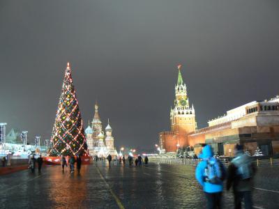Wir erreichten Moskau relativ zentral und entschlossen uns, uns den Aufenthalt bis zum Abflug zu einer kurzen Sightseeing-Tour zu versüßen. Wir gaben das Gepäck in der lokalen Gepäckaufbewahrung am Bahnhof ab und erleichterten uns zunehmend die Tour. Nach kurzem Fußmarsch ging es in die Metro und ab mit Linie 1 zum Roten Platz. Von dort aus starteten wir einen kleinen Rundmarsch um Kreml, Lenins Grab, die weltbekannten Zwiebeltürme und die Bibliotheka Lenina. Da alle Geschäfte noch geschlossen und die meisten Russen wohl noch im Bett, war es ein sehr angenehmes Besichtigen mit viel Platz für Fotos.